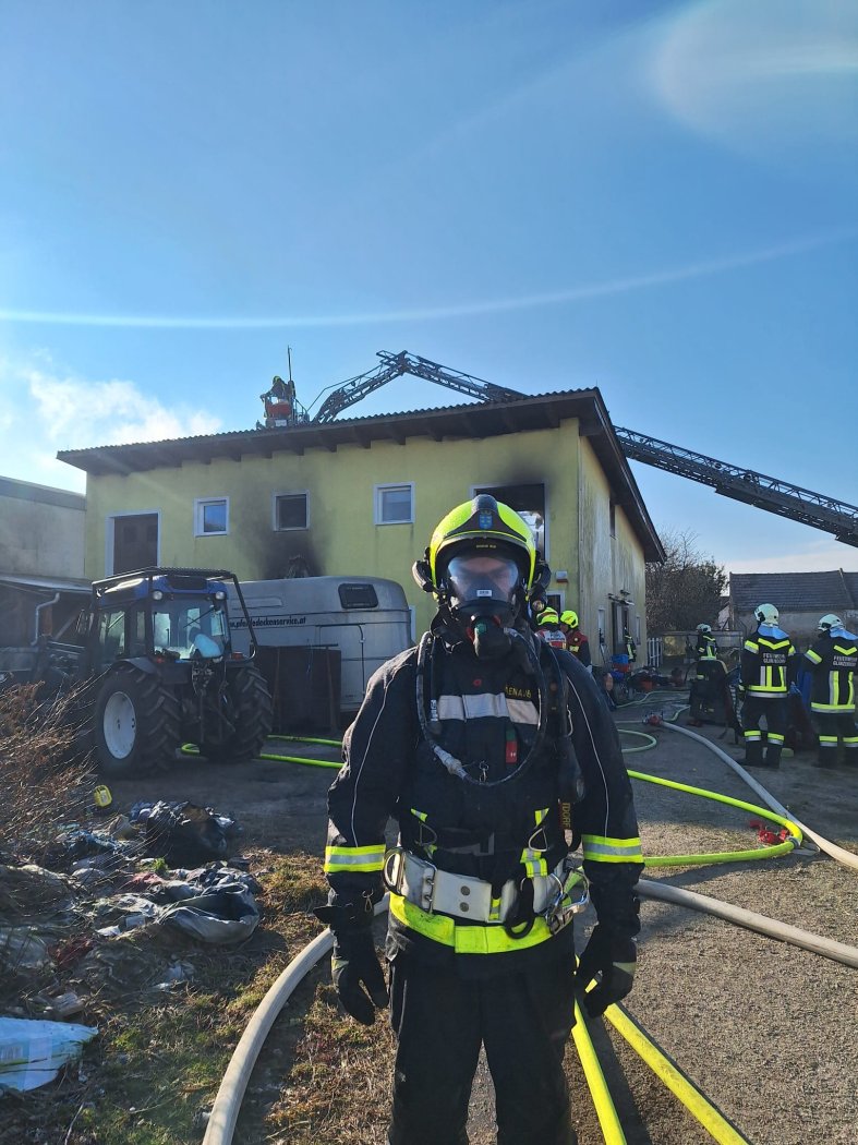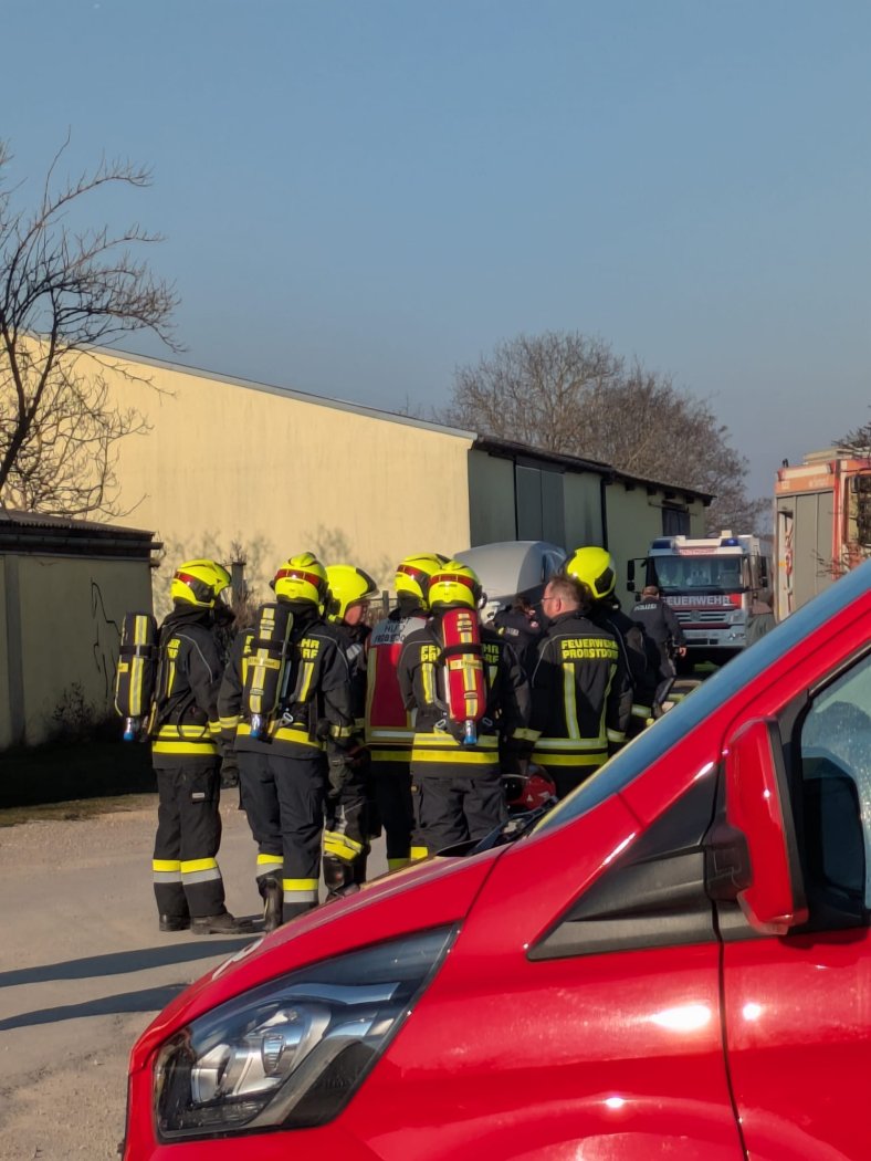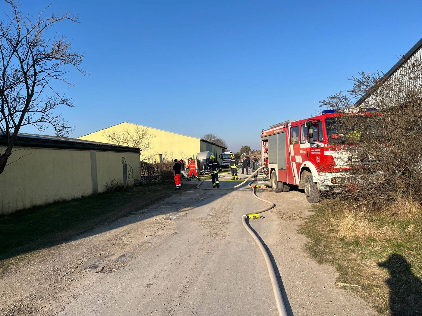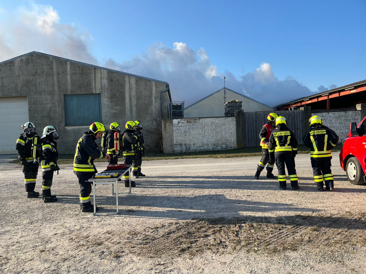 Unverzüglich machten wir uns auf den Weg zum Einsatzort - ein Gebäude mit Stallungen und einer Werkstatt stand bei unserer Ankunft bereits in Brand. Durch das rasche Eingreifen gemeinsam mit den Feuerwehren Rutzendorf, Breitstetten, Franzensdorf, Glinzendorf, Groß-Enzersdorf, Leopoldsdorf, Mühlleiten und Oberhausen konnte der Brand rasch unter Kontrolle gebracht und anschließend gelöscht werden.
