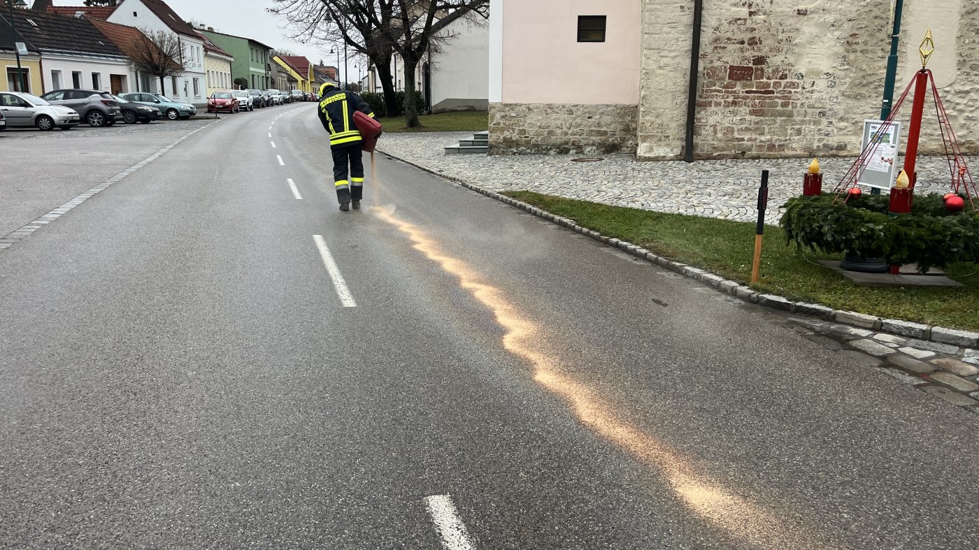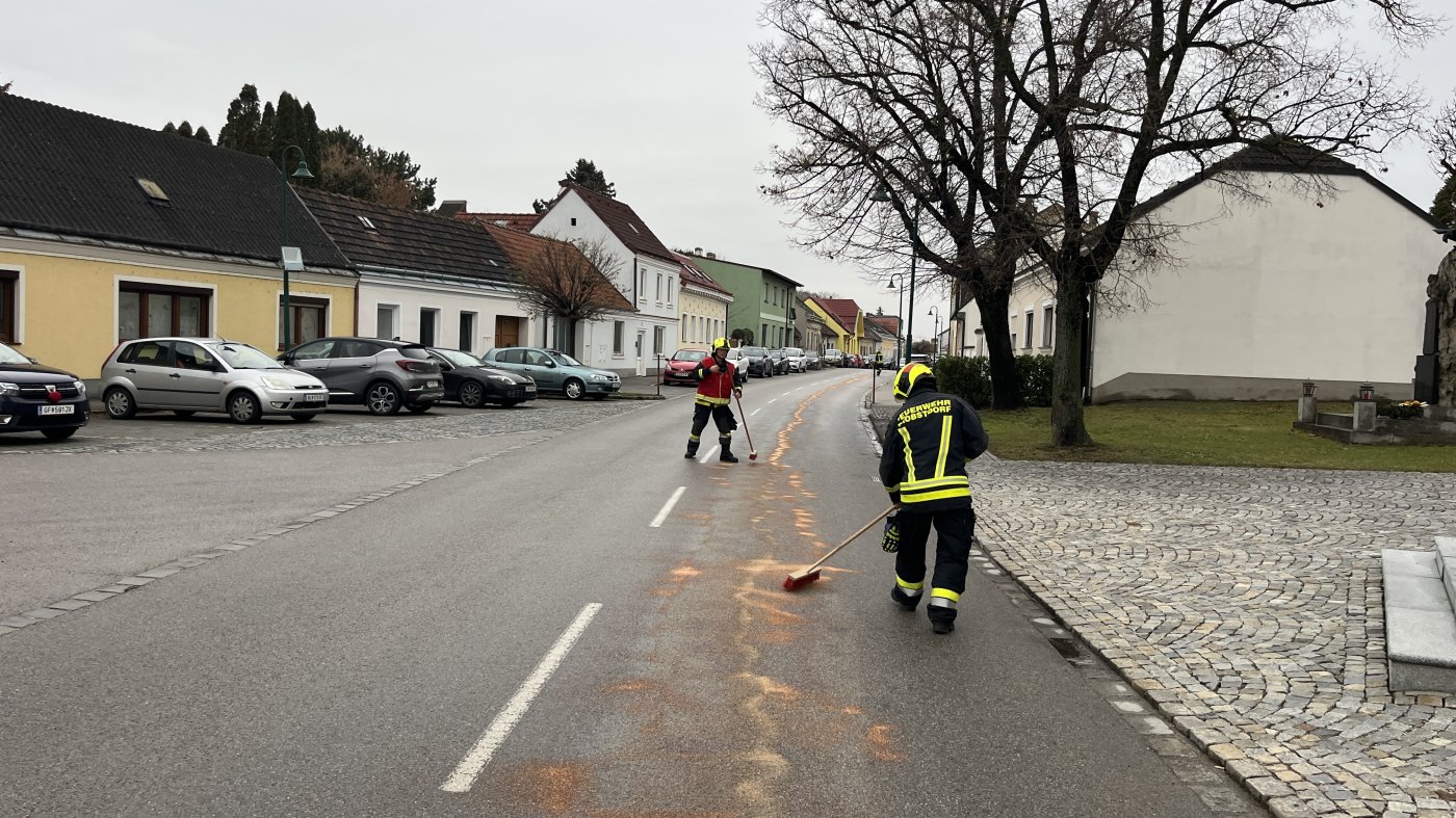 Aus unbekannter Ursache hat ein Fahrzeug Öl verloren und zog die Spur durch zwei Ortschaften. Wir haben gemeinsam mit den anderen beiden Feuerwehren Ölbindemittel aufgebracht und verkehrt. Eine Kehrmaschine der Firma Hödl hat anschließend die Fahrbahn gereinigt.