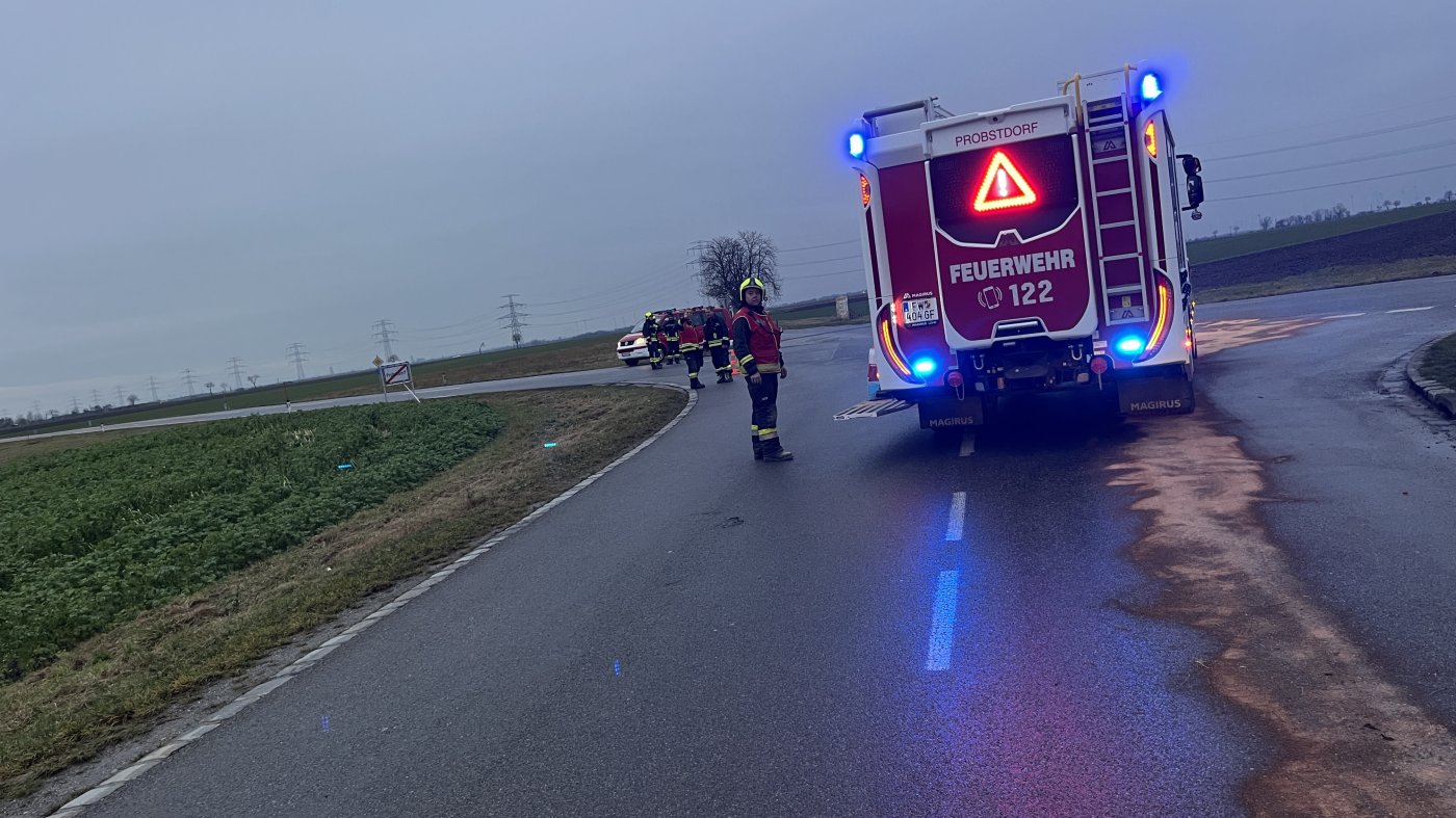Eine kilometerlange Ölspur von der Ortsmitte Probstdorf bis zum Ortsende von Wittau sorgte gegen 15:00 Uhr am 05.12.2025 für einen Einsatz für die Feuerwehren Probstdorf, Oberhausen und Wittau.